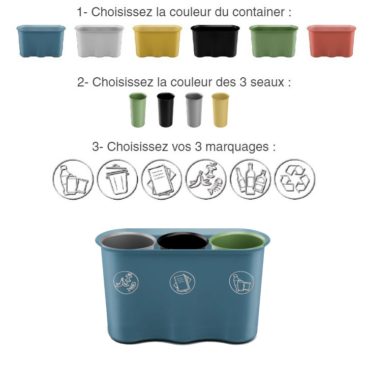 La Signalétique : Personnalisez les couleurs des seaux en fonction des consignes de tri locales de votre commune ou de votre prestataire de collecte.