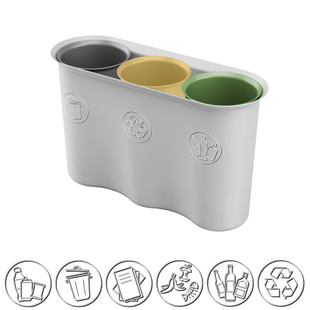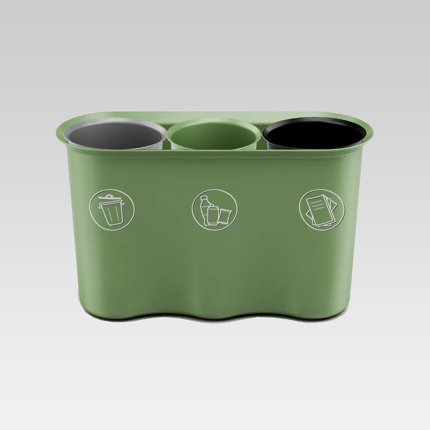 Le tri sélectif ne doit pas être une contrainte, mais un geste intuitif. Grâce à ses opercules de couleurs et ses pictogrammes clairs, la Selectibox Trio utilise la méthode du « Nudge » (incitation douce) pour guider l’utilisateur. Son esthétique minimaliste lui permet de s’intégrer aussi bien dans un bureau de direction que dans une suite d’hôtel de luxe, rendant le tri « invisible » mais efficace.